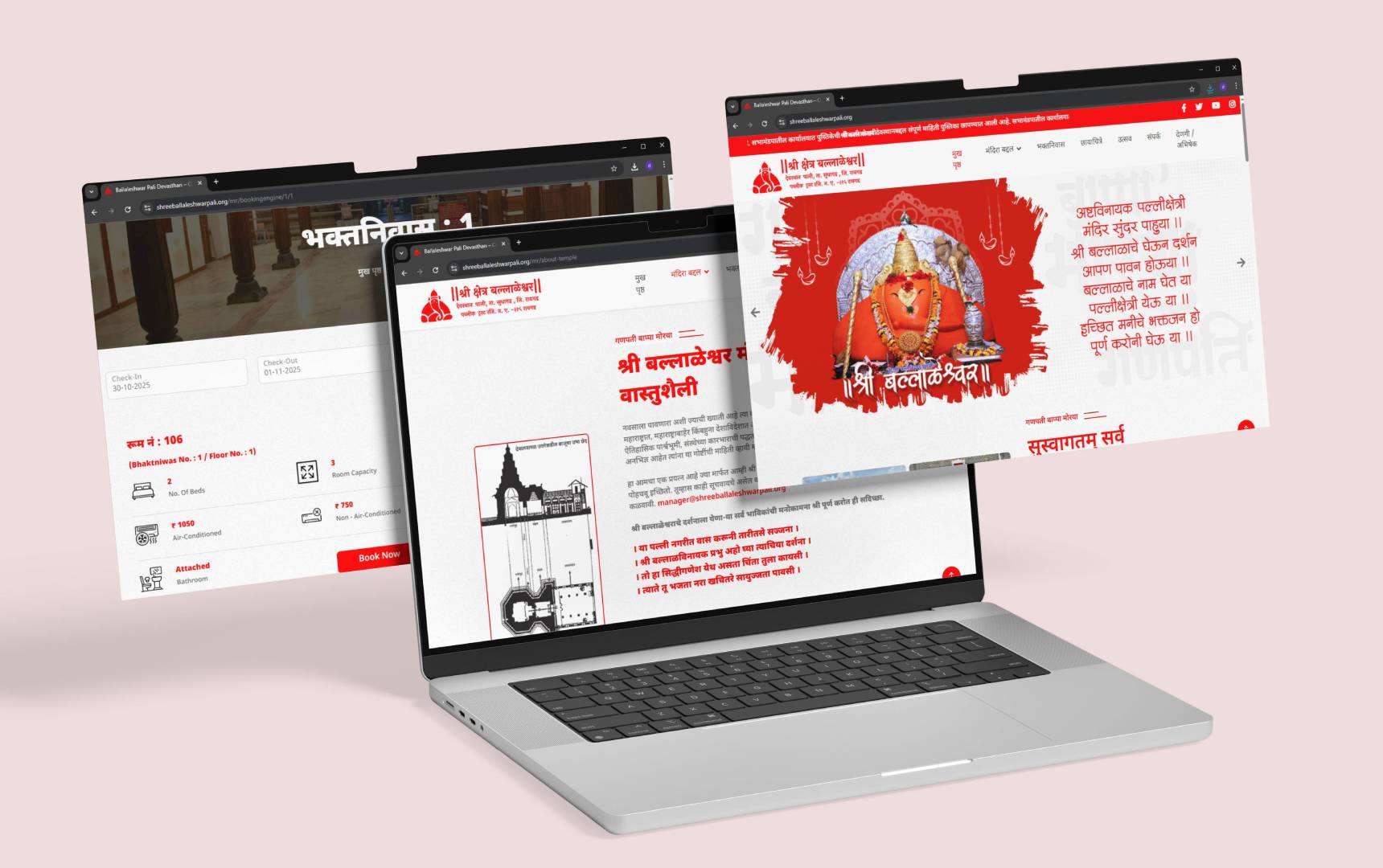 A dedicated website created for the sacred Shree Ballaleshwar Temple, Pali. Devotees can book stays, offer Denagi, schedule poojas, and explore the temple’s rich history and heritage — all through a seamless digital experience.